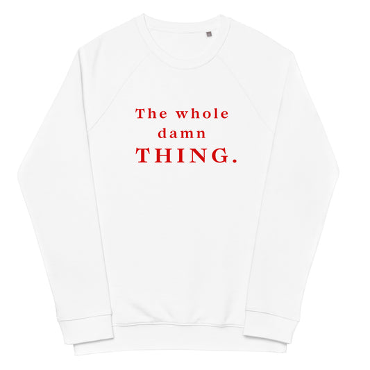 The Whole Damn Thing Unisex organic raglan sweatshirt in WHITE